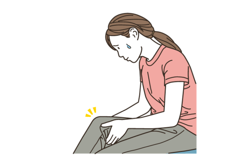 - 腫脹(水が溜まる): 外傷や捻挫により半月板が損傷し、炎症が生じた結果として、膝に水(関節液)が溜まることがあります。一般的に、水がたまり続け、かつ痛みが強い場合には軟骨の損傷が強いと考えられます。